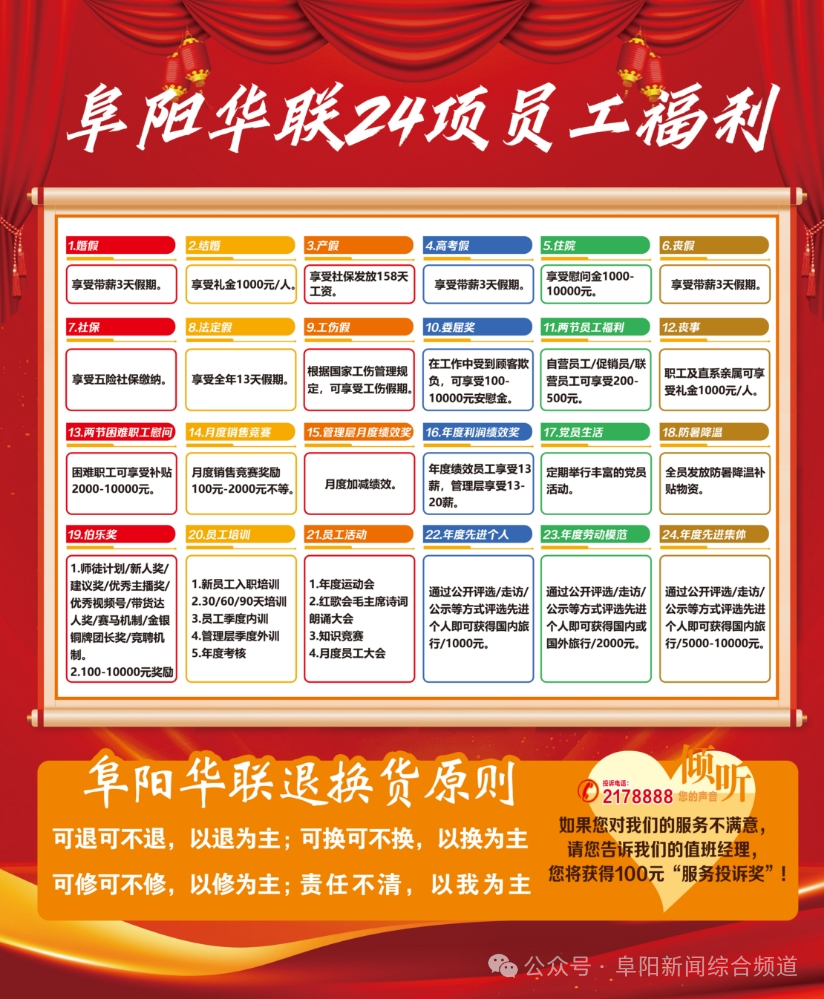 我們深知,你選擇的不僅是一份薪水,更是一種生活方式和成長(zhǎng)路徑。在阜陽(yáng)華聯(lián),我們?yōu)槟銣?zhǔn)備了: